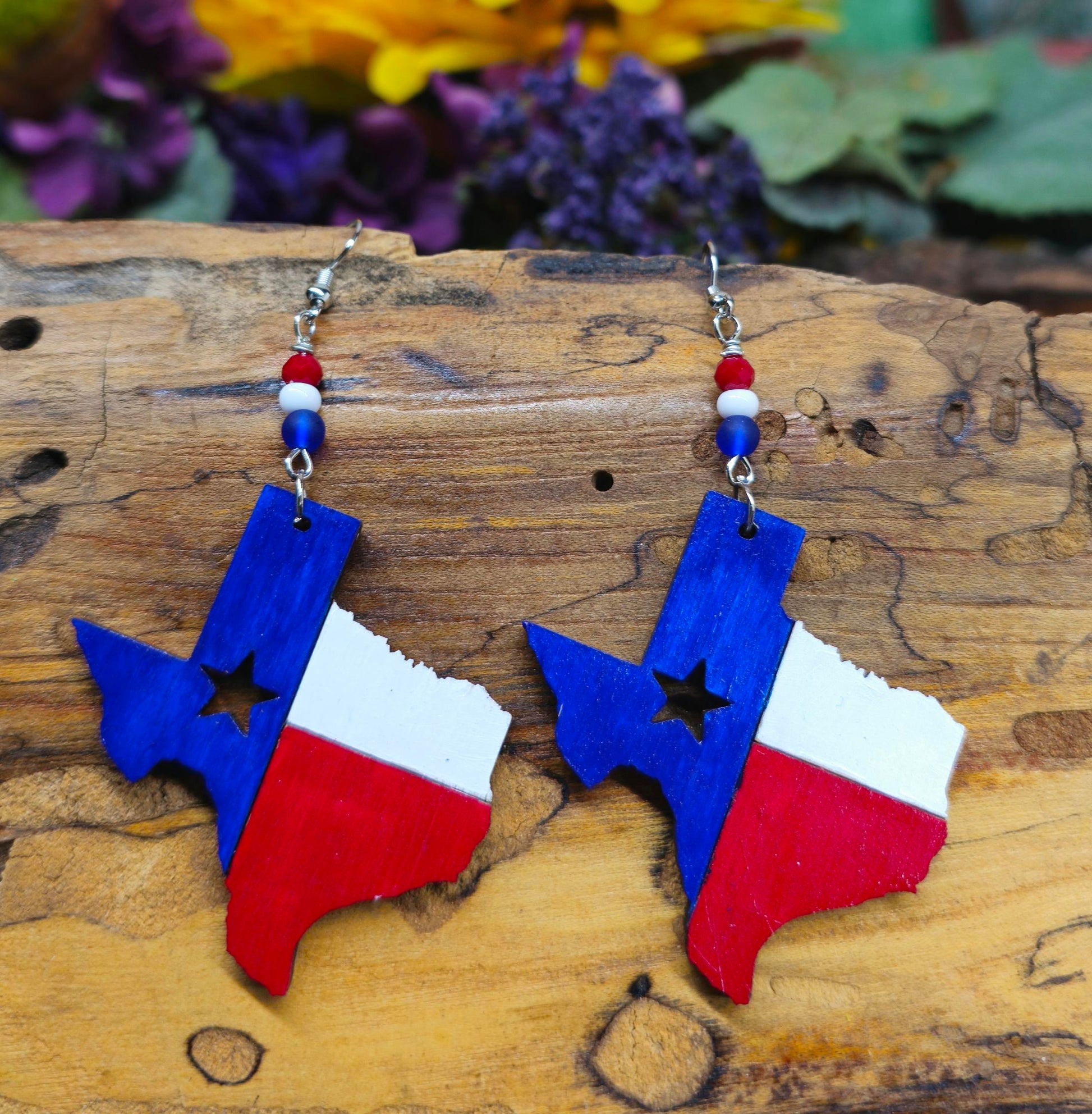 Hand-Painted Texas Shaped Laser Cut Wooden Lightweight Earrings