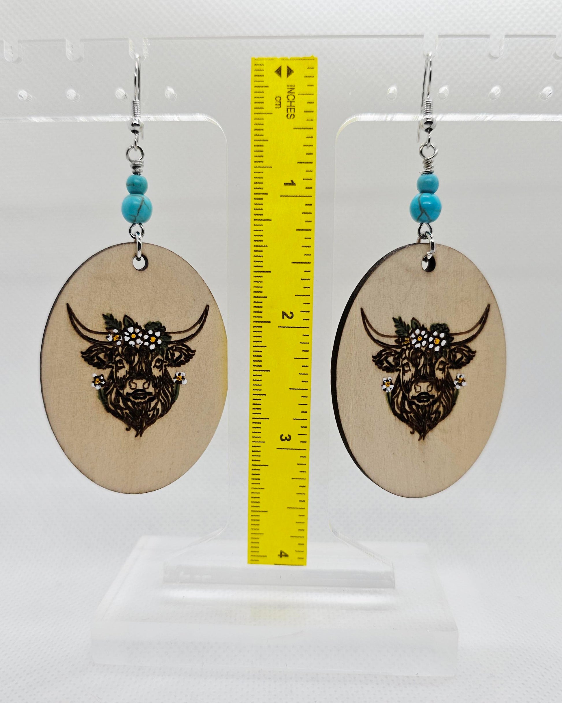 Highland Cow Hand Painted Laser Engraved Wooden Lightweight Earrings